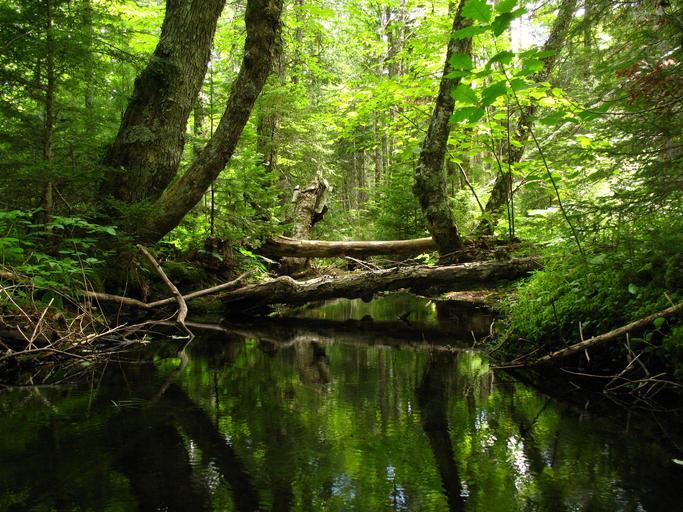 Keywords: stream forest creek nature water green foliage landscape river environment tree