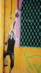 Keywords: street-art man umbrella yellow black fun hose pink artistic graffiti wall fresco painted wall urban art urban painting