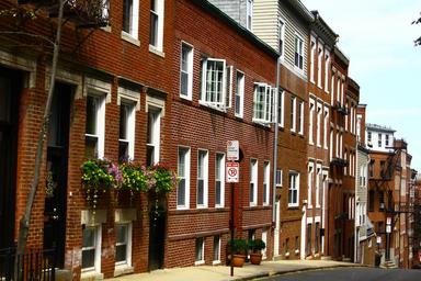 Keywords: street bricks sidewalk urban city urban street town vintage old
