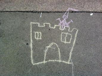 Keywords: street chalk street art children picture castle princess drawing asphalt chalk drawing fairy tales