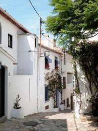 Keywords: street houses white people sailor mediterranean sunny architecture facade calella de palafrugell girona costa brava wall rustic stone traditional construction catalonia