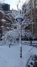 Keywords: street lamp community snow apartment building winter tree
