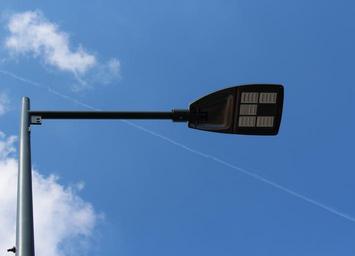 Keywords: street lamp mast candelabra link light modern day sky clouds