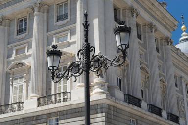 Keywords: street lamp palace royal royal palace architecture madrid tourism monument facade castle spain construction city stone view king cities fortress historical urban