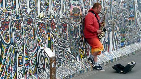 Keywords: street musicians musician jazz street music berlin art graffiti east side gallery saxophone