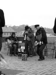 Keywords: street musicians prague charles bridge men street scene city scene street artists black and white