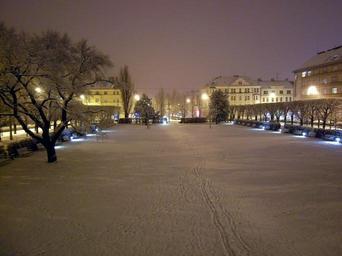 Keywords: street landscape city night evening lights winter snow ice architecture buildings outside beautiful cold