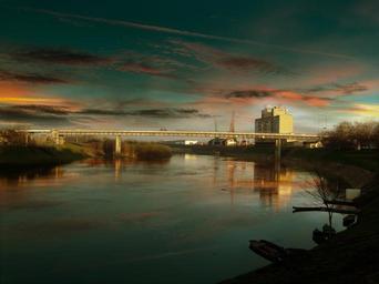 Keywords: street panoramic sky bridge river sunset industrial view urban landscape
