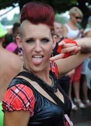 Keywords: street parade punk zurich face tongue hairstyle stick out tongue portrait cheeky woman