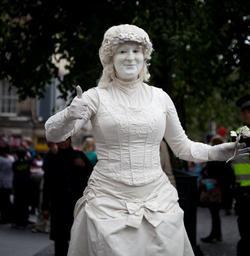 Keywords: street performers edinburgh fringe actors performers make up costumes people expression adult artist face human pose female