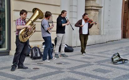 Keywords: street performers group musicians street