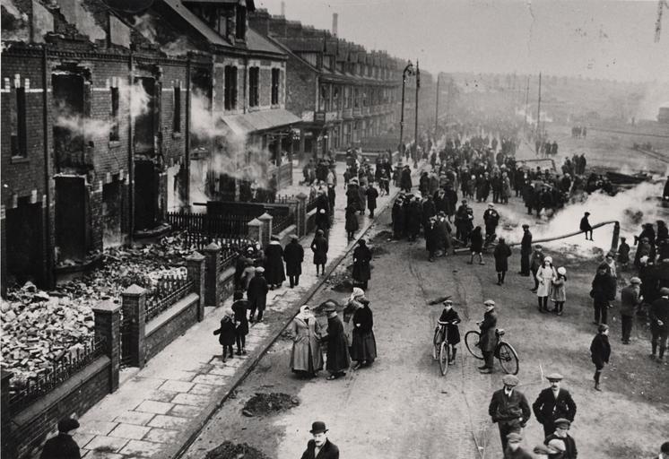 Keywords: damage lamposts fire timber yard timberyard 1922 hartlepool bicycles outdoor Photograph taken in the aftermath of the Great Timber Yard Fire in Hartlepool, 1922. Street scene in which locals can be observed surveying the damage. Lamposts appear to have bent over due to the heat caused by the blaze which, in places, is still smouldering. Photograph Collection No: 340 Images from Hartlepool Cultural Services that are part of The Commons on Flickr are labeled 'no known copyright restrictions' indicating that Hartlepool Cultural Services is unaware of any current copyright restrictions on these images either because the copyright is waived or the term of copyright has expired. Commercial use of images is not permitted. Applications for commercial use or for higher quality reproductions should be made to Hartlepool Cultural Services, Sir William Gray House, Clarence Road, Hartlepool, TS24 8BT. When using the images please credit 'Hartlepool Cultural Services'. Photograph taken in the aftermath of the Great Timber Yard Fire in Hartlepool, 1922. Street scene in which locals can be observed surveying the damage. Lamposts appear to have bent over due to the heat caused by the blaze which, in places, is still smouldering. Photograph Collection No: 340 Images from Hartlepool Cultural Services that are part of The Commons on Flickr are labeled 'no known copyright restrictions' indicating that Hartlepool Cultural Services is unaware of any current copyright restrictions on these images either because the copyright is waived or the term of copyright has expired. Commercial use of images is not permitted. Applications for commercial use or for higher quality reproductions should be made to Hartlepool Cultural Services, Sir William Gray House, Clarence Road, Hartlepool, TS24 8BT. When using the images please credit 'Hartlepool Cultural Services'. |