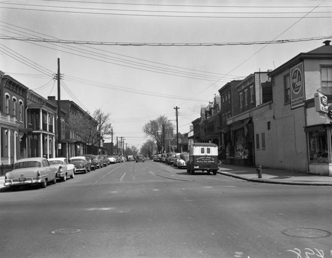 Keywords: library of virginia libraryofvirginia richmond va richmondva african-american africanamerican adolph b. rice studio adolphbricestudio streetscapes automobiles dairy trucks dairytrucks milk trucks milktrucks architecture trolley car tracks trolleycartracks street car tracks streetcartracks jackson ward jacksonward harlem of the south harlemofthesouth 1956 pet ice cream peticecream signs tru- ade truade richmond dairy company richmonddairycompany national register of historic places nationalregisterofhistoricplaces national historic landmark districts nationalhistoriclandmarkdistricts blackandwhite monochrome road outdoor building black and white Title: Street scene, Jackson Ward Creator: Adolph B. Rice Studio Date: April 13, 1956 Identifier: Rice Collection 1002B Format: 1 negative, safety film, 4 x 5 in. Rights Info: No known restrictions on publication. Repository: Library of Virginia, Prints and Photographs, 800 E. Broad St., Richmond, VA, 23219, USA, digitool1.lva.lib.va.us:8881/R Title: Street scene, Jackson Ward Creator: Adolph B. Rice Studio Date: April 13, 1956 Identifier: Rice Collection 1002B Format: 1 negative, safety film, 4 x 5 in. Rights Info: No known restrictions on publication. Repository: Library of Virginia, Prints and Photographs, 800 E. Broad St., Richmond, VA, 23219, USA, digitool1.lva.lib.va.us:8881/R |