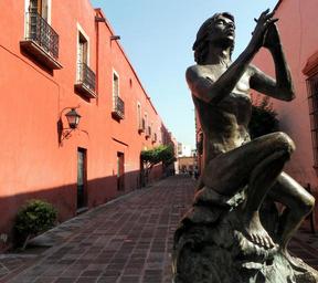 Keywords: street sculpture flute art perspective people city architecture old building stone monument strait buildings