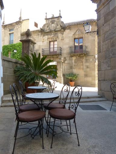 Keywords: street terrace perspective chairs melancholy calm old historical architecture old building historic buildings city monuments historic city coffee facade old town spain tourism stone