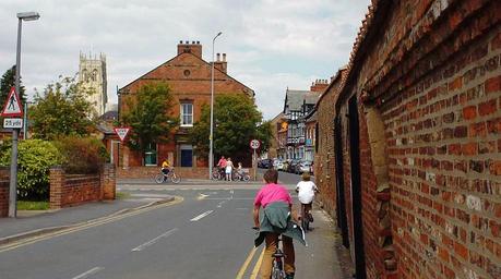 Keywords: street village england yorkshire hedon sidewalk bicycles boys bicycle ride minster houses house cottage building clouds