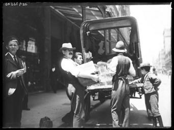 | Keywords: blackandwhite people monochrome black and white Streetscenes including pedestrians on King Street, George Street, Pitt Street, plus horsedrawn vehicles and activities on York and Castlereagh Streets, including the delivery of ice, bottle and gas cylinders. Format: Glass photonegative Find more detailed information about this photographic collection: acms.sl.nsw.gov.au/item/itemDetailPaged.aspx?itemID=404293 From the collection of the State Library of New South Wales www.sl.nsw.gov.au Streetscenes including pedestrians on King Street, George Street, Pitt Street, plus horsedrawn vehicles and activities on York and Castlereagh Streets, including the delivery of ice, bottle and gas cylinders. Format: Glass photonegative Find more detailed information about this photographic collection: acms.sl.nsw.gov.au/item/itemDetailPaged.aspx?itemID=404293 From the collection of the State Library of New South Wales www.sl.nsw.gov.au |