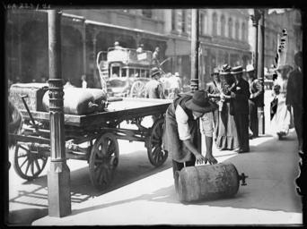 | Keywords: blackandwhite monochrome photo border black and white Streetscenes including pedestrians on King Street, George Street, Pitt Street, plus horsedrawn vehicles and activities on York and Castlereagh Streets, including the delivery of ice, bottle and gas cylinders. Format: Glass photonegative Find more detailed information about this photographic collection: acms.sl.nsw.gov.au/item/itemDetailPaged.aspx?itemID=404293 From the collection of the State Library of New South Wales www.sl.nsw.gov.au Streetscenes including pedestrians on King Street, George Street, Pitt Street, plus horsedrawn vehicles and activities on York and Castlereagh Streets, including the delivery of ice, bottle and gas cylinders. Format: Glass photonegative Find more detailed information about this photographic collection: acms.sl.nsw.gov.au/item/itemDetailPaged.aspx?itemID=404293 From the collection of the State Library of New South Wales www.sl.nsw.gov.au |