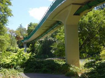 | Keywords: StressedRibbonBridgeUnderside7138.JPG Stressed Ribbon pedestrian bridge over the Rogue River Grants Pass Oregon USA Own 2007-08-16 User Leonard G see below <gallery> Image StressedRibbonBridgeUnderside7138 JPG Underside with utility pipes suspended Image StressedRibbonBridgeUpperside7135 JPG Undulating but stable deck </gallery> Footbridges in Oregon Stressed ribbon bridges | ||||