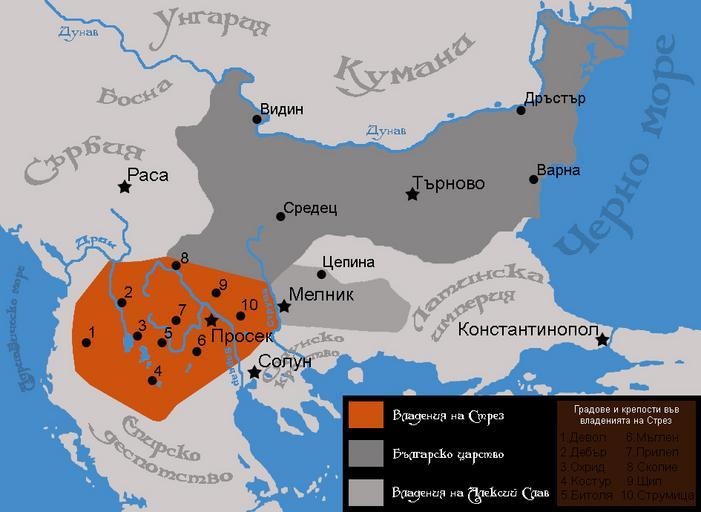 | Keywords: Strez.jpg bg Владенията на севасток ато Ст ез и Балканите в нач на 13 век es Mapa de los Balcanes a principios del siglo XII el domino de Strez puede verse en rojo Собст ено п оизведение Пот ебител Kandi 2007-09-19 Dominio público Cc-zero Maps of the history of Bulgaria in the Middle Ages Maps of the history of Romania in the Middle Ages Maps of the history of the Republic of Macedonia in the Middle Ages Macedonia region | ||||