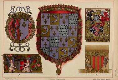| Keywords: Ströhl Heraldischer Atlas t56 2.jpg Hugo Gerhard Ströhl Heraldischer Atlas Stuttgart 1899 Tafel 56 Proben französischer Heraldik aus dem XVI Jahrhundert Copien von Noel Bouton in Paris Tafel http //austria-forum org/wbg/ heraldischeratl00de1899kfu austria-forum org 1899 Creator Hugo Gerhard Ströhl 1919 Heraldischer Atlas Ströhl Coat of arms of the Dauphin of France |