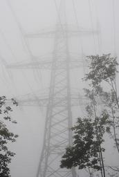 Keywords: strommast power lines power generation autumn fog mood