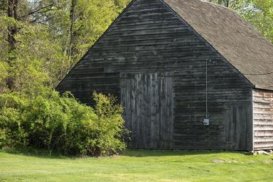 Keywords: structure building outdoors shack shed wooden wood green color spring sunny sunlight