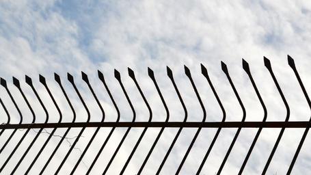 Keywords: structure series fence sky clouds grid metal demarcation silhouette