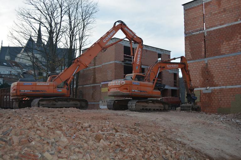 Keywords: structures excavators wall gravel orange