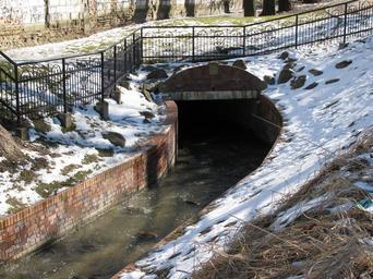 Keywords: Strzyża - park Kuźniczki w Gdańsku.JPG pl Park Kuźniczki w Gdańsku - Strzyża po wypłynięciu z browaru own Artur Andrzej 2011-03-07 Cc-zero Strzyża in Gdańsk Kuźniczki Park in Gdańsk Winter 2010-2011 in Gdańsk