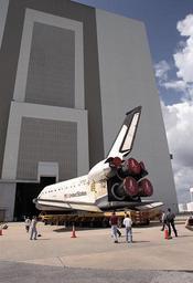 | Keywords: columbia rollover sts-93 sts93 shuttle vab vehicle assembly building vehicleassemblybuilding outdoor The orbiter Columbia, aboard its orbiter transporter system, rolls toward the opening in the Vehicle Assembly Building where it was mated with the external tank mating in preparation for mission STS-93. The primary mission objective was the deployment of the Advanced X-ray Astrophysics Facility, renamed the Chandra X-Ray Observatory. Mission STS-93 was the first commanded by a woman, Colonel Eileen M. Collins. The mission launched on July 23, 1999. Image #: 99PP-0616 Date: June 2, 1999 The orbiter Columbia, aboard its orbiter transporter system, rolls toward the opening in the Vehicle Assembly Building where it was mated with the external tank mating in preparation for mission STS-93. The primary mission objective was the deployment of the Advanced X-ray Astrophysics Facility, renamed the Chandra X-Ray Observatory. Mission STS-93 was the first commanded by a woman, Colonel Eileen M. Collins. The mission launched on July 23, 1999. Image #: 99PP-0616 Date: June 2, 1999 |