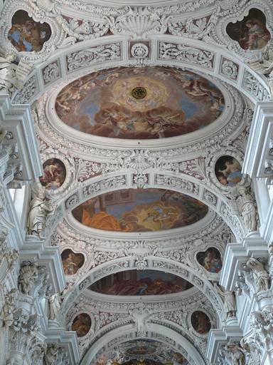 Keywords: stucco ceiling blanket frescoes dom st stephan passau baroque bishop church church episcopal see passauer stephansdom st stephan's cathedral naves nave dreischiffiges nave ribbed yokes atlases dome painting