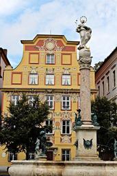 Keywords: stucco façade fountain marketplace old town age marketplace manneken patrona bavarie historically patron saint beautiful worth a visit