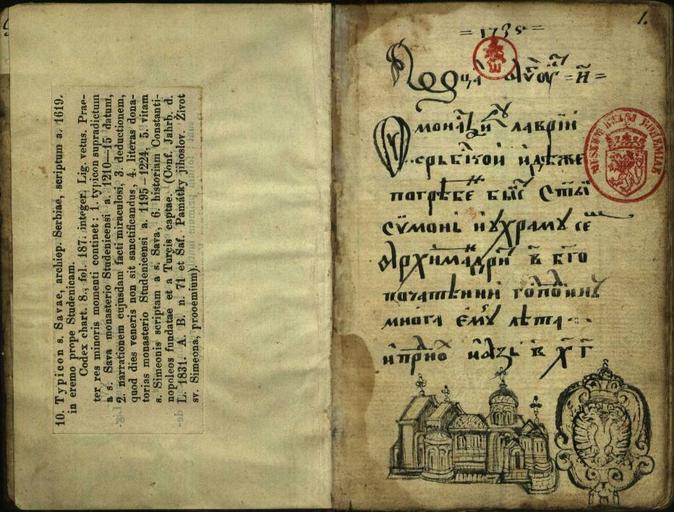 | Keywords: Studenica Typicon.jpg  sr Дигитална копија комплетног  укописа Студеничког типика који је свети Сава написао 1208 г по доласку у С бију на молбу б ата Стефана Свети Сава постаје ста ешина манасти а где активно  ади на о ганизацији монашког живота у Студеници Овај ц квени устав тј п авилник о богослужењима и животу монаха у манасти има Сава пише по узо у на Хиланда ски типик Значај Студеничког типика је највише у томе што ће постати главна основа за устав С пске п авославне ц кве Дигитална копија Студеничког типика добијена је љубазношћу ди екто а  ационалног музеја у П агу господина  ихала Лукеша О игинал се чува у том музеју под сигнату ом IX H 8  Š10 1208 cite web Одг Ста и Рукописи http //www pravoslavna-srbija com/forum/index php topic 1426 12 Original by St Sava 1208 other versions Custom license marker 2015 01 11 PD-old-100 Uploaded with UploadWizard Saint Sava 13th-century works in Serbia Serbian manuscripts Studenica Monastery |