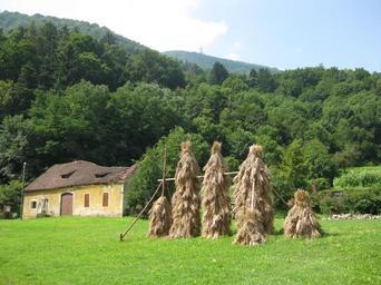 Keywords: Studenice-kope.JPG en Studenice village in Slovenia Own Sl-Ziga 2008 Studenice Abandoned houses in Slovenia Hay drying poles Boč mountain