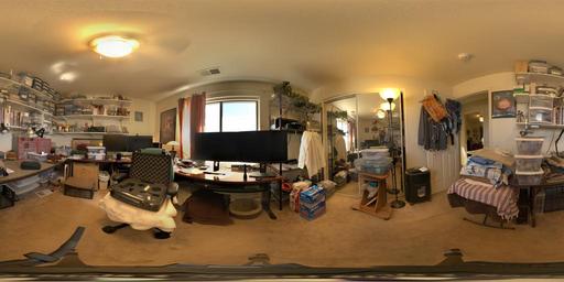 | Keywords: equirectangular Playing around with fisheye lens on spherical panorama head in the complex environment of my very messy studio. This pan was created with 6 each of -30 and +30 degree tilts, for a total of 12 shots. I'm not real thrilled with this. I think the main topic of the sphere needs to be straight-on to the lens for better resolution/clarity. Playing around with fisheye lens on spherical panorama head in the complex environment of my very messy studio. This pan was created with 6 each of -30 and +30 degree tilts, for a total of 12 shots. I'm not real thrilled with this. I think the main topic of the sphere needs to be straight-on to the lens for better resolution/clarity. |