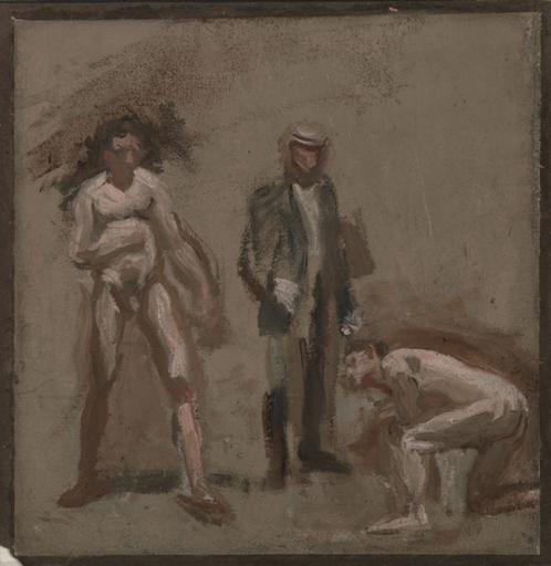 | Keywords: Study for Taking the Count by Thomas Eakins 1898.jpeg  en Taking the Count study oil on canvas by the American artist Thomas Eakins 24 8 cm x 23 9 cm 9 3/4 in x 9 7/16 in Courtesy of the Yale University Art Gallery Yale University New Haven Connecticut Yale University Art Gallery http //ecatalogue art yale edu/detail htm objectId 34823 Creator Thomas Eakins 1898 PD-old-auto 1916 Studies art Taking the Count by Thomas Eakins Paintings of nude males Paintings by Thomas Eakins in the Yale University Art Gallery 1898 paintings Three men |