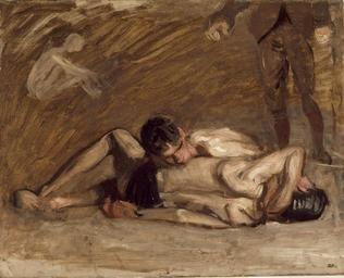 | Keywords: Study for Wrestlers.jpg Artwork Creator Thomas Eakins 1899 oil canvas cm 40 5 50 96 institution Los Angeles County Museum of Art Art of the Americas Building 313 http //collectionsonline lacma org/mwebcgi/mweb exe request record;id 14525;type 101 Los Angeles County Museum of Art object history credit line Mr and Mrs William Preston Harrison Collection Inscription in another hand probably by Mrs Eakins lower right T E accession number 48 32 1 http //collectionsonline lacma org/mwebcgi/mweb exe request record;id 14525;type 101 LACMA http //collectionsonline lacma org/MWEBimages/aa_mm/full/48_32_1 jpg Image <gallery> Image Eakins Thomas 1844-1916 - Lottatori 1 jpg 1 Picture Image Eakins Thomas 1844-1916 - Lottatori 2 jpg 2 Partial sketch Image Study for Wrestlers jpg 3 Full sketch Image Eakins Thomas 1844-1916 - Lottatori 3 jpg 4 Painting </gallery> Q20881153 PD-old-auto-1923 1916 DEFAULTSORT Eakins Thomas; Wrestler 1899 Study; LACMA Paintings by Thomas Eakins Wrestlers Eakins Paintings by Thomas Eakins in the Los Angeles County Museum of Art Studies art |