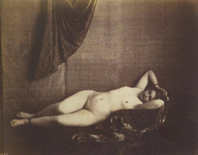 | Keywords: Study naked no1940 Villeneuve-182.jpg Étude d'après nature nu n°1940 Print on salted paper from a paper negative 16 5x12 3 cm New York Metropolitan Museum of Art coll Gilman Paper Company inv 1993 69 1 Scanned from Gustave Courbet ISBN 9782711852970 1853 Julien Vallou de Villeneuve 1795-1866 PD-old Vintage nude photographs Julien Vallou de Villeneuve photographs in the Metropolitan Museum of Art Black and white photographs of nude recumbent women Nude female bare feet apparent French art in the Metropolitan Museum of Art |