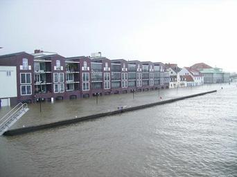 | Keywords: Sturmflut in Bremerhaven An der Geeste.jpg Bei einer Sturmflut am 9 November 2007 überfluteter Bereich an der Geeste in Bremerhaven Die Situation auf dem Bild sieht ernsthafter aus als sie tatsächlich ist Derartige Sturmfluten ereignen sich mehrmals im Herbst/Winter und die Hauseigentümer in diesem Viertel sind darauf vorbereitet Beim Haus links handelt es sich um ein neues Gebäude bei dem der Hochwasserschutz besonders berücksichtigt wurde Floodings caused by a storm tide in Bremerhaven on 9 November 2007 The situation looks more complicated than it really is Such tides happen several times in autumn and winter and house owners are used to handle these situations Own 2007-11-09 Garitzko Storm_tide_in_Bremerhaven Geeste river 2007 in Bremerhaven |