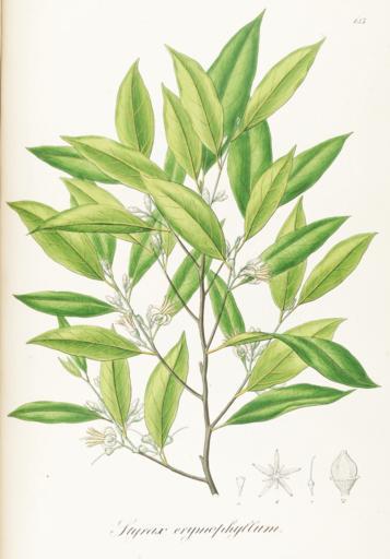 Keywords: Styrax glabratus Pohl137.png es hactenus ineditae Vol 1 1827 Johann Baptist Emanuel Pohl see http //www biolib de PD-old Styrax glabratus Styracaceae botanical illustrations