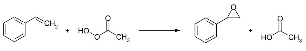 Keywords: Styrene oxide synthesis 01.svg en Synthesis of styrene oxide de Synthese von Styrenoxid own Steffen 962 2014-12-21 PD-chem Epoxidation by peracids Cc-zero