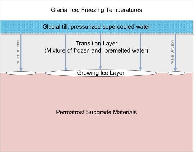 Keywords: Subglacial ice lens formation.jpg en For use with article being written on ice lenses Derived from information in Dash2006 - Cite journal Dash G A W Rempel J S Wettlaufer The physics of premelted ice and its geophysical consequences Rev Mod Phys 78 695 American Physical Society 2006 http //link aps org/doi/10 1103/RevModPhys 78 695 10 1103/RevModPhys 78 695 30 November 2009 Murton2006 - Science 314 5802 1127 - 1129 17 November 2006 10 1126/science 1132127 30 November 2009 Rempel2007 - Cite journal Rempel A W Formation of ice lenses and frost heave Journal of Geophysical Research 112 F02S21 American Geophysical Union 2007 http //www agu org/journals/jf/jf0702/2006JF000525/ 10 1029/2006JF000525 30 November 2009 Rempel2008 “ issue 113 F01013 American Geophysical Union 2008 10 1029/2007JF000870 30 November 2009 Peterson2008 - Cite journal Peterson R A Krantz W B Differential frost heave model for patterned ground formation Corroboration with observations along a North American arctic transect Journal of Geophysical Research 113 G03S04 American Geophysical Union 2008 10 1029/2007JG000559 30 November 2009 Walder1985 - Cite journal Walder Joseph Hallet Bernard A theoretical model of the fracture of rock during freezing Geological Society of America Bulletin 96 3 336-346 Geological Society of America March 1985 http //gsabulletin gsapubs org/content/96/3/336 abstract ijkey e0b1c6faba1aa4e436df6af6486fb4760986bb8c keytype2 tf_ipsecsha 10 1130/0016-7606 1985 96<336 ATMOTF>2 0 CO;2 30 November 2009 own Williamborg date own work - all rights released - Williamborg <span class signature-talk >talk</span> 21 46 6 December 2009 UTC Formazione di lente di ghiaccio subglaciale jpg Ice lens Permafrost Glaciological diagrams Patterned ground |