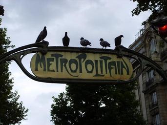 Keywords: subway metro pigeons birds city underground transportation station urban sign