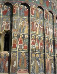 | Keywords: Sucevita murals 2010 24.jpg Suceviţa Monastery Romania The church is one of the Painted churches of northern Moldavia listed in UNESCO's list of World Heritage sites own photo 14 d'Août 2010 Man vyi Own work all rights released Public domain Suceviţa murals Murals and icons on the exterior of churches Windows in Romania |