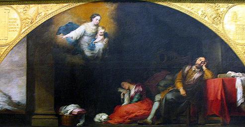 | Keywords: Sueño patricio Murillo lou.jpg La obra que está inspirada en la fundación de la Basilica di Santa Maria Maggiore de Roma representa el momento en que el patricio Juan tuvo un sueño en el que se le apareció la Virgen María y el Niño Jesús Ca 1664-1665 oil on canvas Size cm 524 231 Institution Museo del Prado Sala 016 https //www museodelprado es/coleccion/obra-de-arte/fundacion-de-santa-maria-maggiore-de-roma-el-sueo/61495770-ee6c-4983-ae38-2f2a87e002ce Fotografía digital realizada por Pablo Alberto Salguero Quiles el Domingo 29 de febrero de 2004 12 33 06 en el Museo del Prado de Madrid España La fotografía está realizada con un tiempo de exposición un poco largo con el fin de no utilizar flash que no está permitido en el museo así como trípode por eso está un poco movida o cuanto menos no tan definida como deseaba Se retocó con programas informáticos de edición de imágenes el color con el fin de que se ganase en definición de imagen Así mismo faltan unos pocos centímetros de los márgenes principalmente debido al encuadre de la foto accession number P00994 own PD-old-100 GFDL relicense El sueño del patricio Juan de Murillo Museo del Prado |