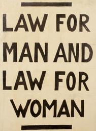 | Keywords: the women's library thewomenslibrary hires text sign writing street sign signboard monochrome outdoor TWL.1999.53Poster, block printed (?), paper, black printed inscription: 'LAW FOR MAN AND LAW FOR WOMAN', white ground, laminated. TWL.1999.53Poster, block printed (?), paper, black printed inscription: 'LAW FOR MAN AND LAW FOR WOMAN', white ground, laminated. | ||||