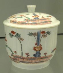 | Keywords: Sugar Box with Banded Hedge Design, c. 1740, St. Cloud, France, soft-paste porcelain with overglaze enamels - Gardiner Museum, Toronto - DSC00686.JPG Exhibit in the Gardiner Museum Toronto Ontario Canada This artwork is in the public domain because the artist died more than 70 years ago Photography was permitted in the museum without restriction Daderot 2012-10-16 14 55 41 Daderot cc0 cc0 Saint-Cloud porcelain in the Gardiner Museum | ||||
