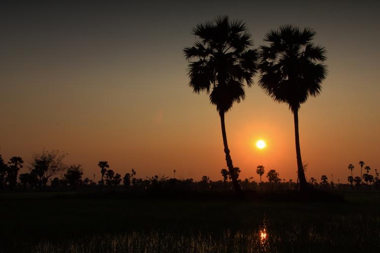 Keywords: sugar palm silhouettes sunset sun rise cornfield evening