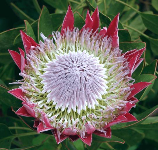 View Original:Sugarbush,_Protea_sp._flower_up_close._Native_to_South_Africa._In_of_one_of_the_oldest_plant_families,_ancestors_date_back_300_million_years,_when_Antartica,_South_America,_Africa,_India,_and_Australia_were_part_of_the_supercontinent_Gondwana..png (1695x1600)